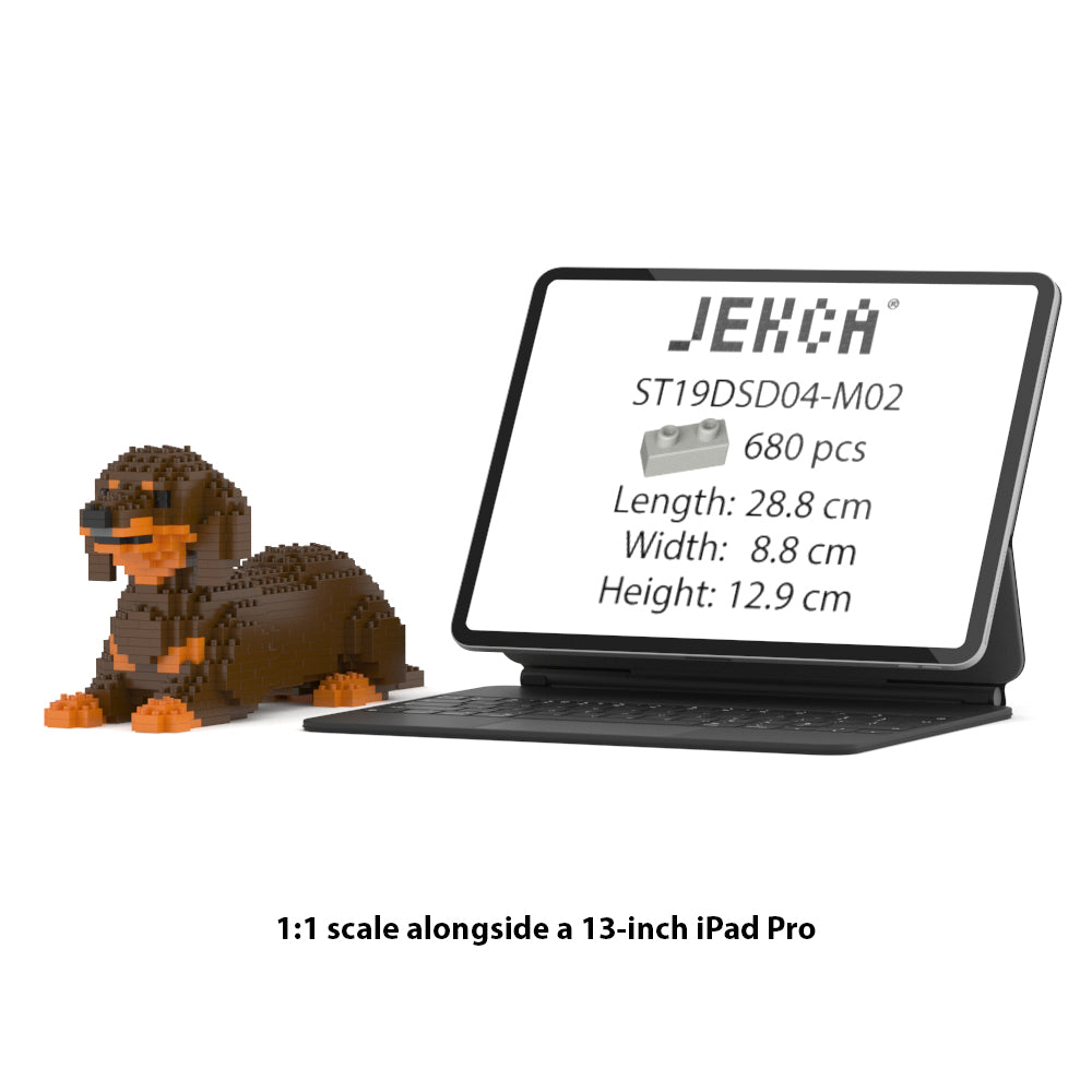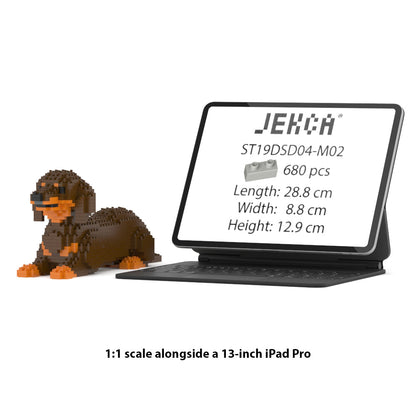Chien Teckel couché marron et feu