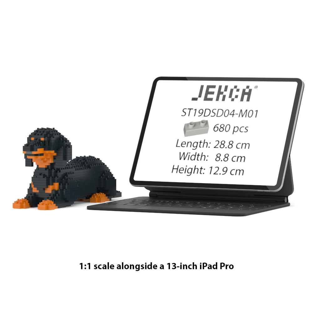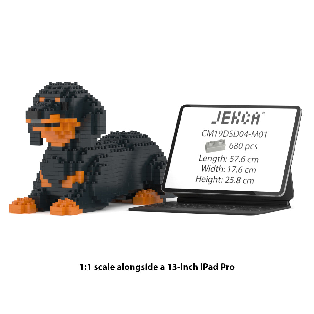 Chien Teckel couché noir et feu