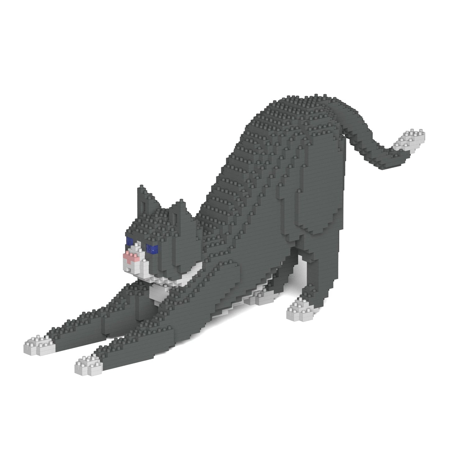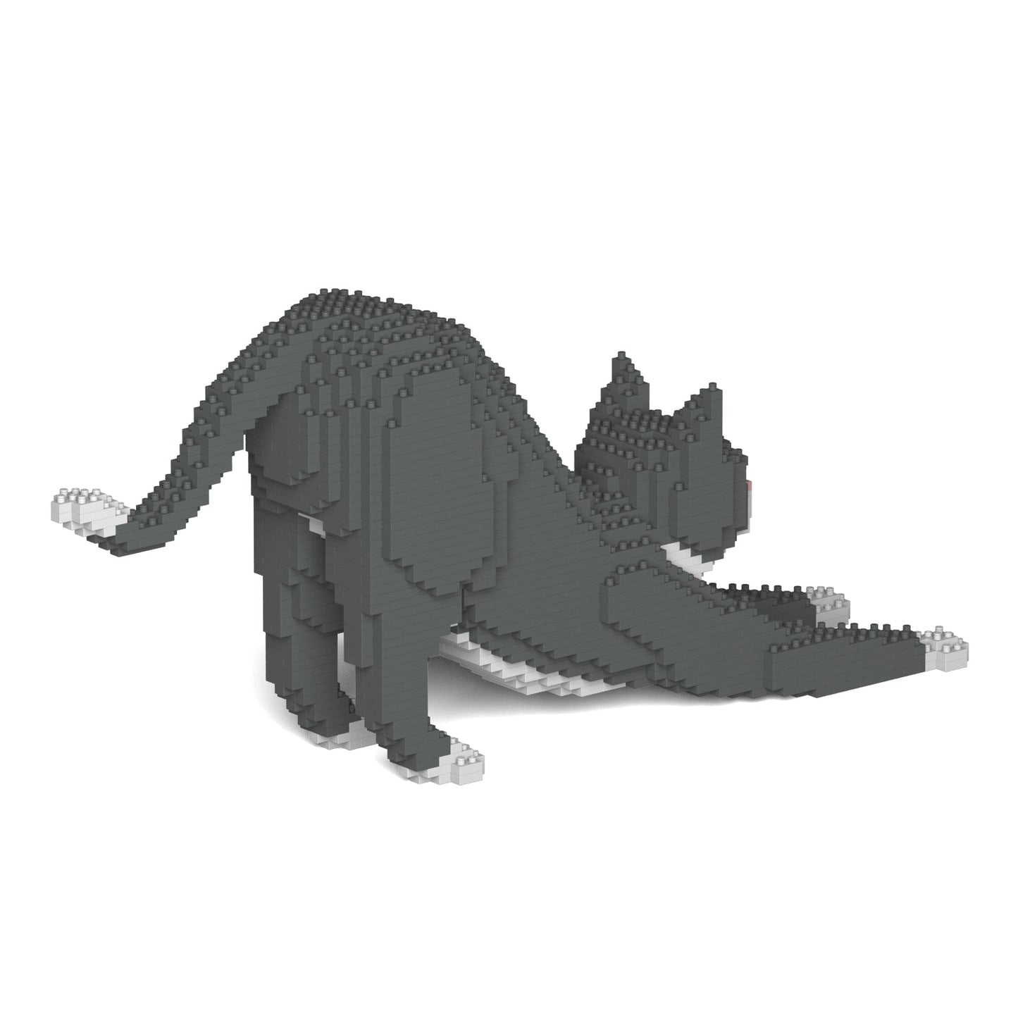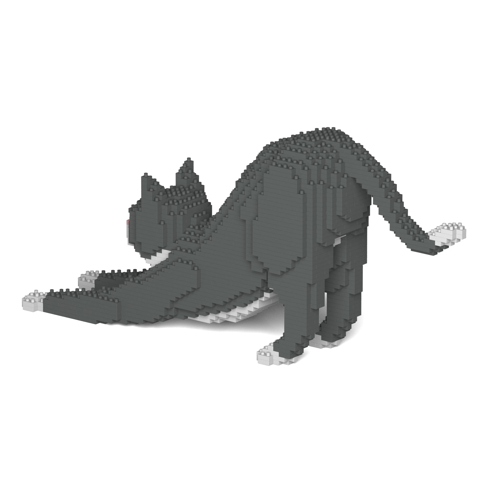Chat Tuxedo gris qui s'étire