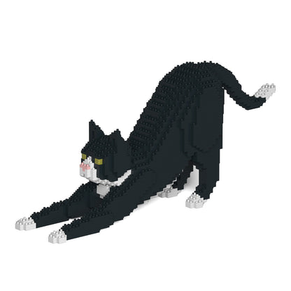 Chat Tuxedo noir qui s'étire